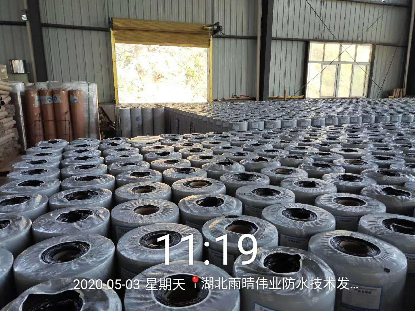 宽幅湿铺聚酯胎防水卷材是以沥青基聚酯胎防水卷材为主体材料(添加功能助剂),单面或双面涂覆自粘层,并附可剥离的涂硅膜作为隔离材料而制成的湿铺防水卷材。